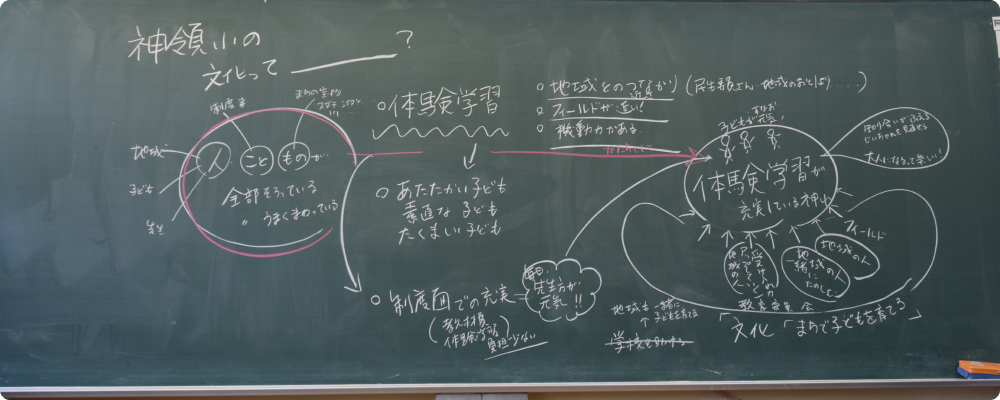 高橋:改めて、町全体で子どもを育てていくイメージが湧いてきましたね。教育は、人的環境(ひと)、物的環境(もの)、自然環境、社会的な環境が大事な要素です。それらが融合しているような図だなと思っています。