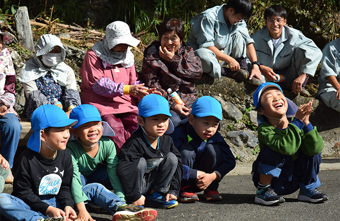 河野:子どもたちは小学校、中学校のときにいろんな人と関わって、神山町が好きという気持ちを持っていると思うんよね。僕の同級生で今は県外や外国にいる人たちも、神山町やまちの人のYouTubeやSNSの発信を見て色々なところから電話がかかってきますね。やっぱりみんな懐かしんでくれます。みんな生まれ故郷として、神山がどこか必ず心の片隅にあると思うんだよね。神山で「人に大事にしてもらった」という経験を幼少期から青年時代までに持っている人は、子育て政策の充実を知ったら戻ってくれるのかなと思っています。