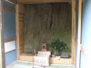 大埜地方面から峠越しにこの木の梢が見えるように成長すると台風でこの梢が折れるので、それ以上に高くはならないといわれている。