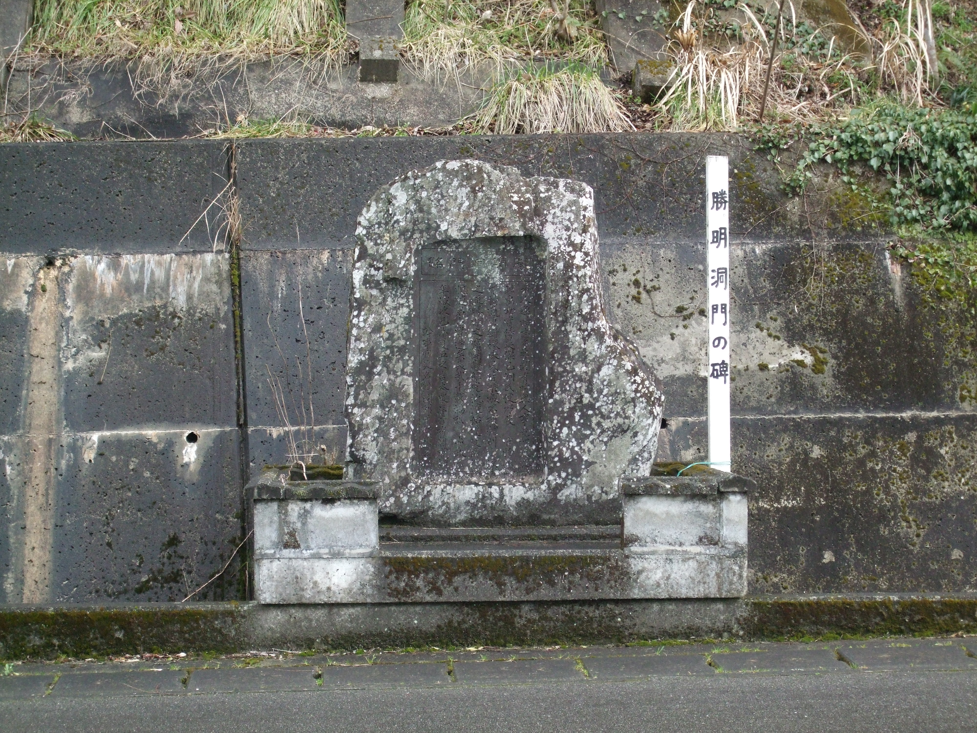 下分、神領両地区にわたって、瘠地を良田とするため,文政6年(1823年)に用水路建設工事が行われたが、最大の難工事となったのが、通称勝明寺の岩山における洞門開削工事であった。この水路の貫通により上神用水路の完成となった。この事跡を後世に伝えるため建立されたのが勝明洞門の碑で、岸有秀による碑文並びに筆跡は見事なものである。