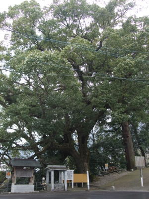 推定樹齢600年で樹周7.62メートル、樹冠東西16.1メートル 南北14.8メートル、樹高30メートルで樹勢も旺盛である。