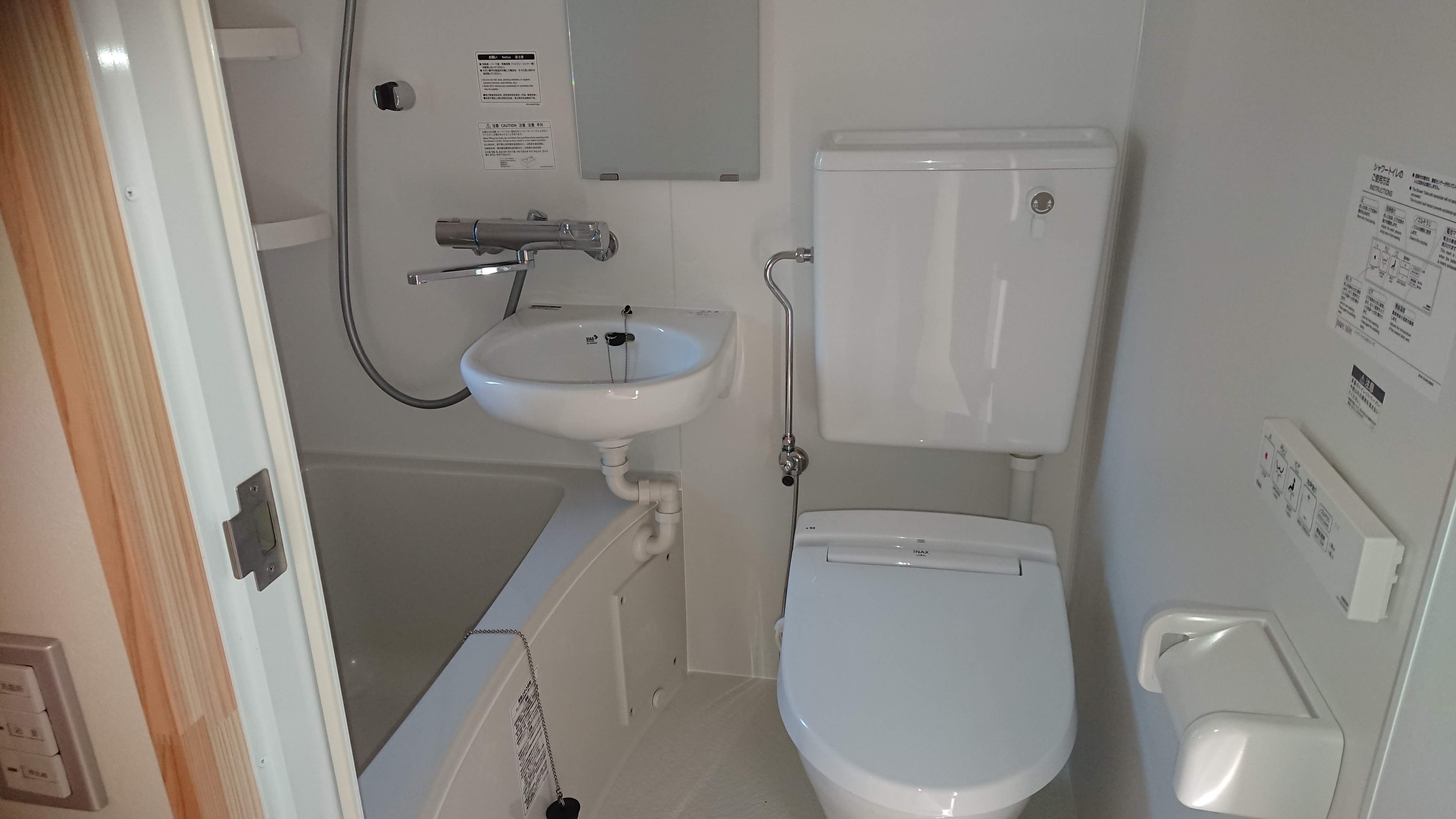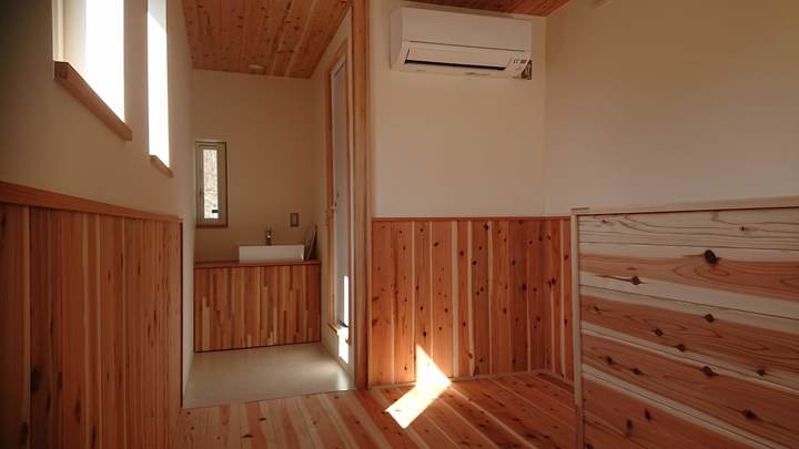 2階 ベッドを置くことができるスペースとお風呂、トイレなどがあります。エアコン設置済。