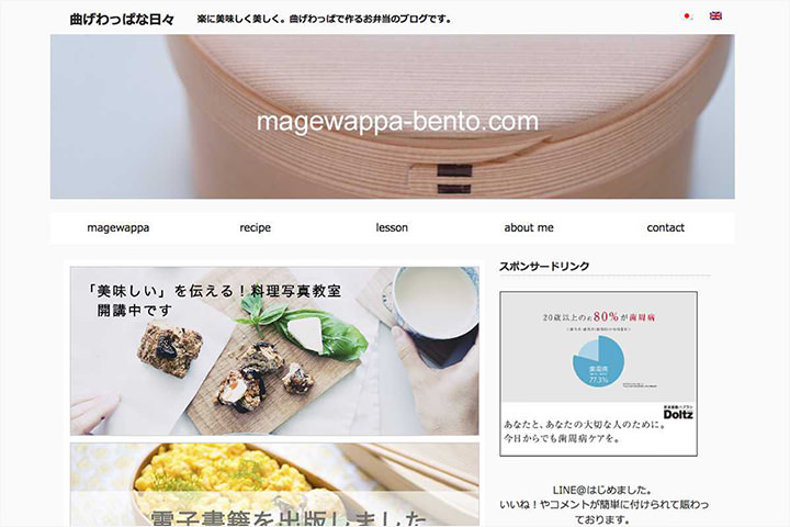 近藤さんのブログ『曲げわっぱな日々』。曲げわっぱに詰めたお弁当のことや写真のことが綴られている。